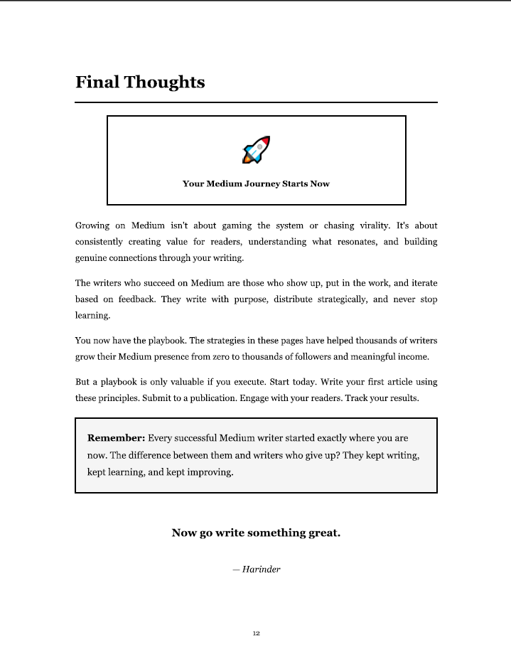 Packed with real-world insights, proven frameworks, and actionable checklists, this playbook turns your writing habit into a thriving personal brand on Medium.